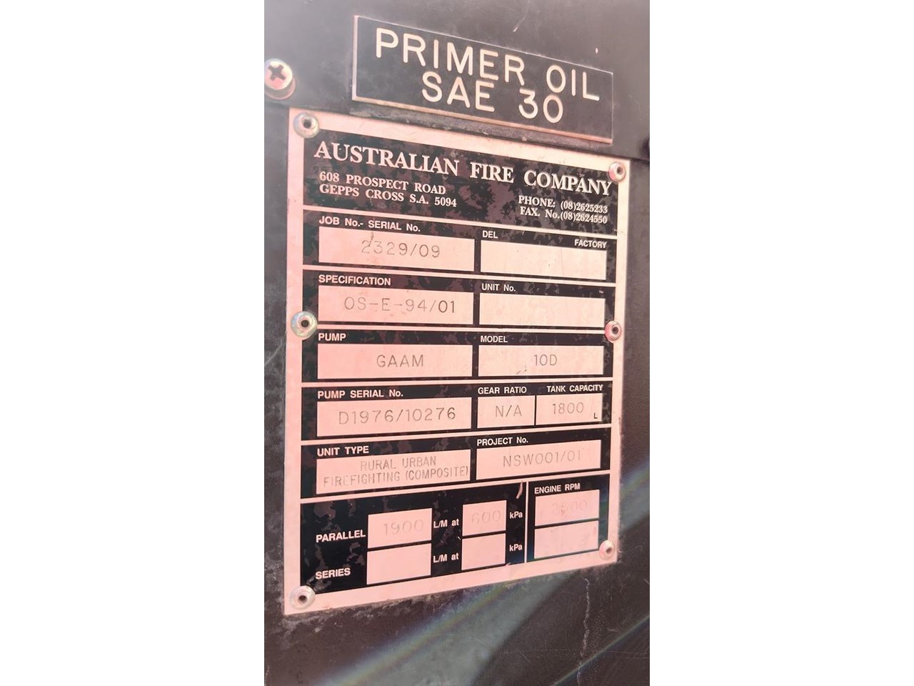 Fitted with Australian Fire Company Body with Gal Water Tank,