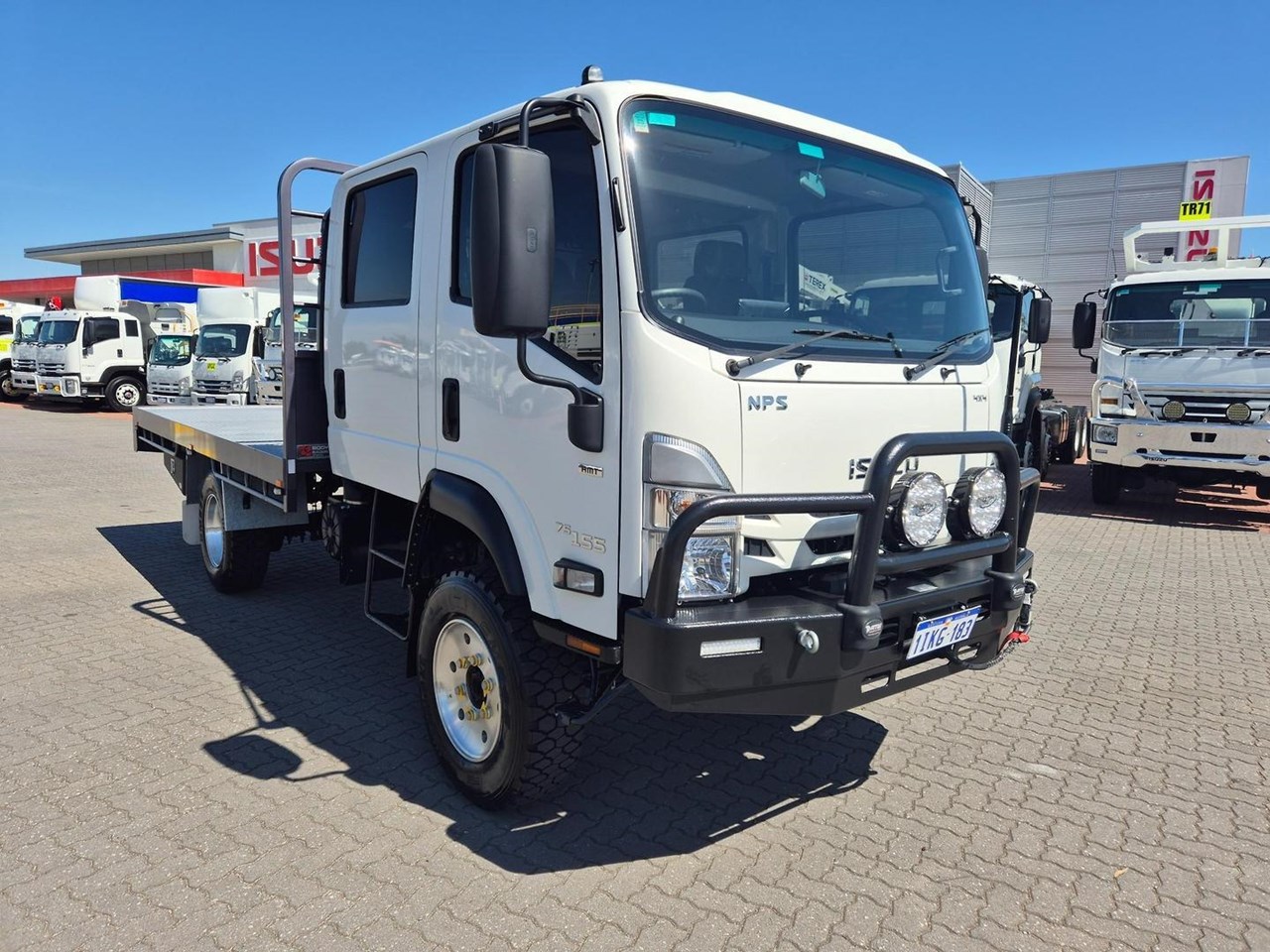 A Very Hard to Find "Isuzu NPS75-155" Crew 4x4 Tray top in amazing condition, complete with the 5.2 Litre Intercooled Turbo/Diesel Powerplant coupled to a 5 Speed Manual Transmission, fitted with a 3.4m Heavy Duty Steel Tray with Handrails and Drop Down Step, ROP's, Hi-Lights, Amber Beacon, UHF Radio, Towbar, Isolation Switch's, 2 x Emergency Shutdown Switches, Fire Extinguishers, Auto Headlights On, Handbrake Alarm, etc, etc, etc.....