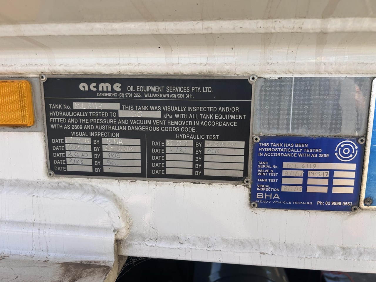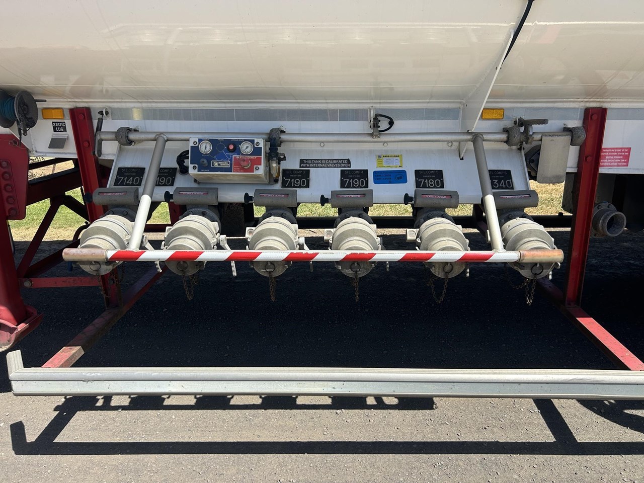 June 2012 build 45000 litre 6 compartment blvr ex fuel tanker . Feb 2023 hydro air operated internal valves , dip sticks and fill tubes on top , safety rails , Hendrickson axles on Hendrickson airbag suspension with EBS brakes . Alcoas , LED lights , wind down legs , under run protection , ATM 45T , tidy tanker straight from a major fuel fleet .