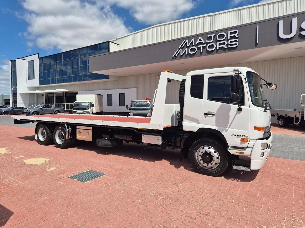 Just a lovely 6x4 280HP AUTO UD PK240-280 Tilt Slide, featuring a Remote Control 9m Heavy Duty Tilt Slide Body, 20,000lb APE Winch, UHF Radio, Reverse Camera, Amber Beacons, Underbody Toolboxes, Towbar, Rear Hi Lights, Dual Fuel Tanks, etc, etc......